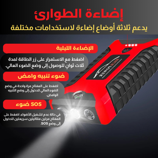 جهاز تشغيل السيارة المحمول بسعة 99800mAh يمنحك القدرة على إعادة تشغيل مركبتك خلال ثوانٍ، مع وظائف إضافية تجعله رفيقك المثالي في الطريق.